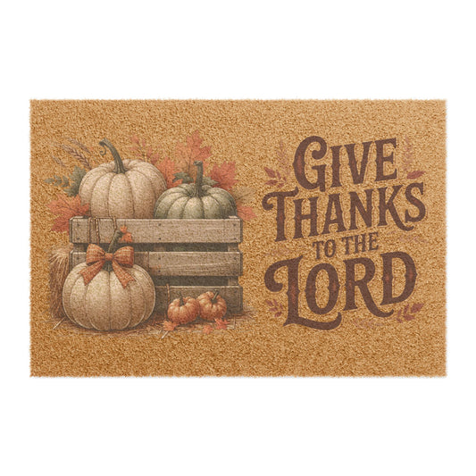 Thankful Pumpkin Doormat | Give Thanks to the Lord Doormat, Fall Decor, Thanksgiving Welcome Mat, Rustic Home Accent, Seasonal Entryway Rug, Harvest Greet