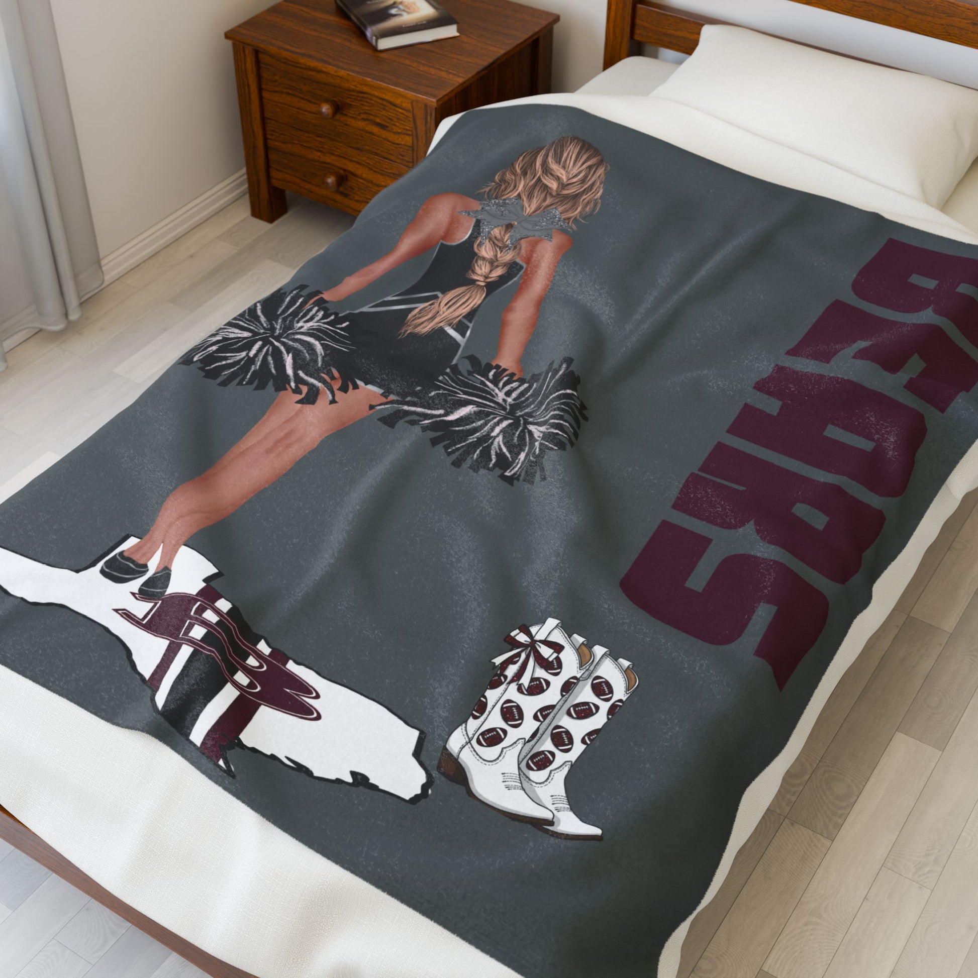 Custom Bears Cheerleader Velveteen Plush Blanket – Pom-Poms, Boots & State Pride